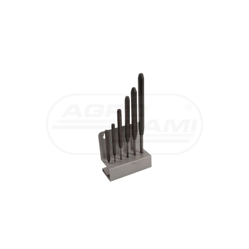 Contents: 6 pin punches: – 2 mm (length: 145 mm) – 3 mm (length: 160 mm) – 4 mm (length: 185 mm) – 5 mm (length: 200 mm) – 6 mm (length: 210 mm) – 8 mm (length: 215 mm)